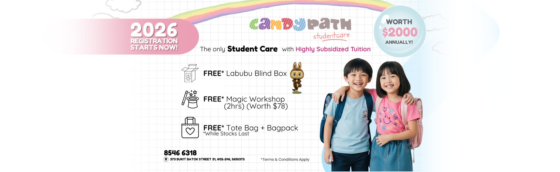 Our diverse programmes include tuitions in Mathematics, English and Science as well as comprehensive CandyPath Student care services. all designed to cater to the unique needs of each learner. We also offer specialized holiday programmes like the PSLE Booster Camp, aimed at equipping students with effective strategies and techniques to excel in their examinations.